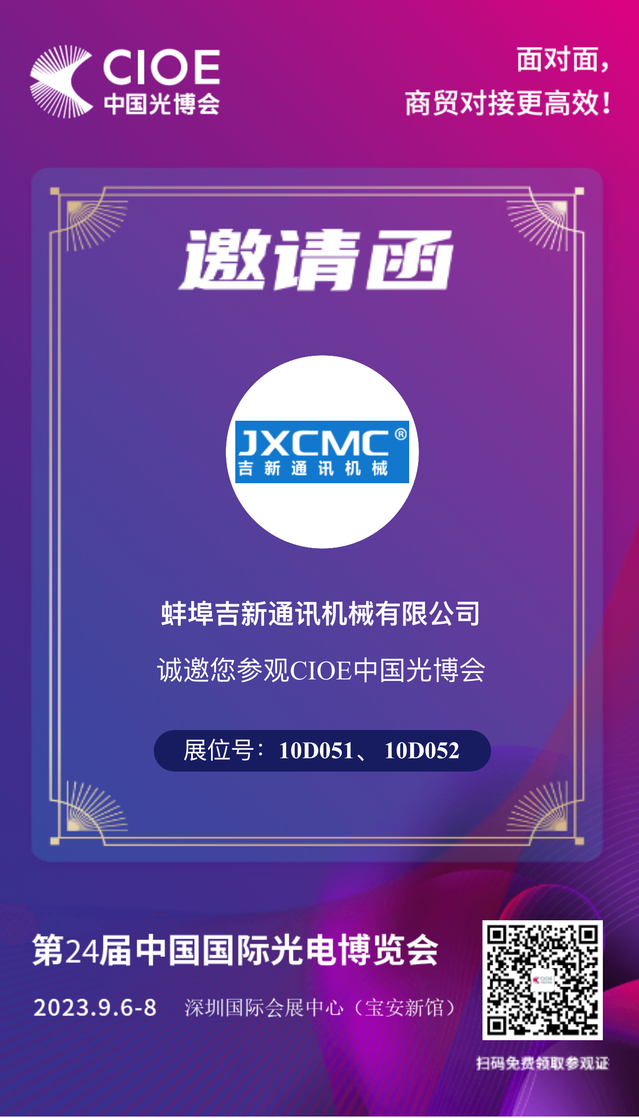 我們將于2023年9月6日至8日,參加在深圳舉辦的第24屆中國國際光電博覽會。地址:深圳國際會展中心(寶安新館) 展位號:10D051、10D052